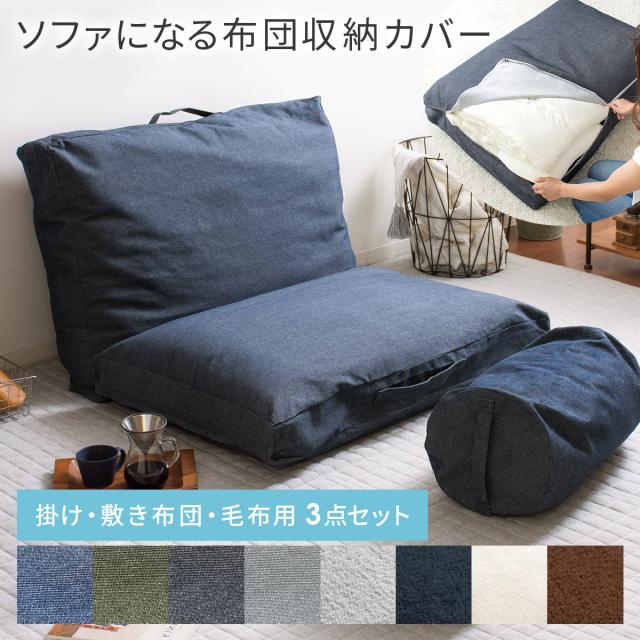 布団収納袋 クッション ソファ 布団 収納袋 ふとん収納 収納ケース 敷布団 掛布団 セット ケース おしゃれ カバー 洗える デニム ネイビー ブラック カーキ グレー アイボリー ブラウン
