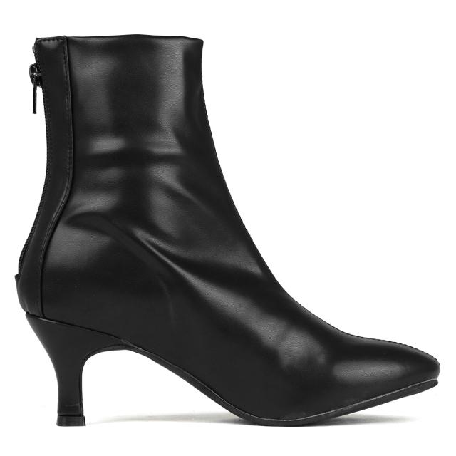 ブーツ ショートブーツ レディース ストレッチブーツ 靴 キトゥンヒール ファスナー 美脚 脚長効果 23.0cm〜24.5cm ブラック LiBERTYDOLL リバティードール No.9061