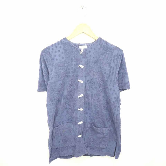 【中古】VILLAGE COURT チュニック ワンピース 前開き 総柄 魚ボタン 半袖 紫 パープル /TT19 レディース