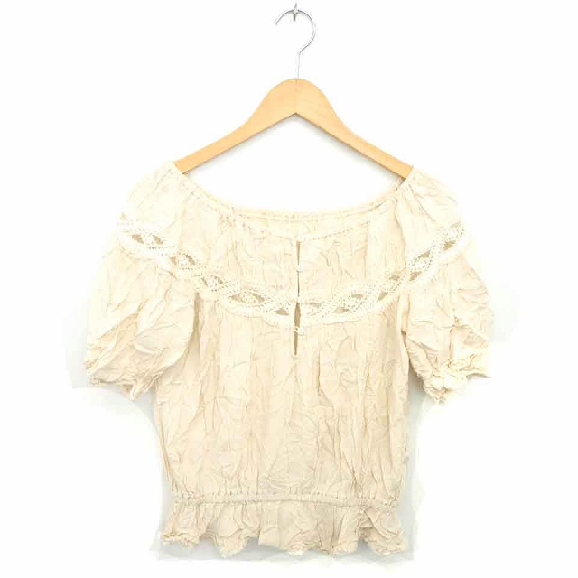【中古】AGLAIA topaz カットソー ブラウス プルオーバー 透けレース ハーフボタン 半袖 M ベージュ 薄茶 /TT25