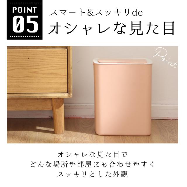 - 手がふさがっていても自動で蓋があき助かってます。場所もとらずコンパクトで色も良く見栄えもすごくいいです。