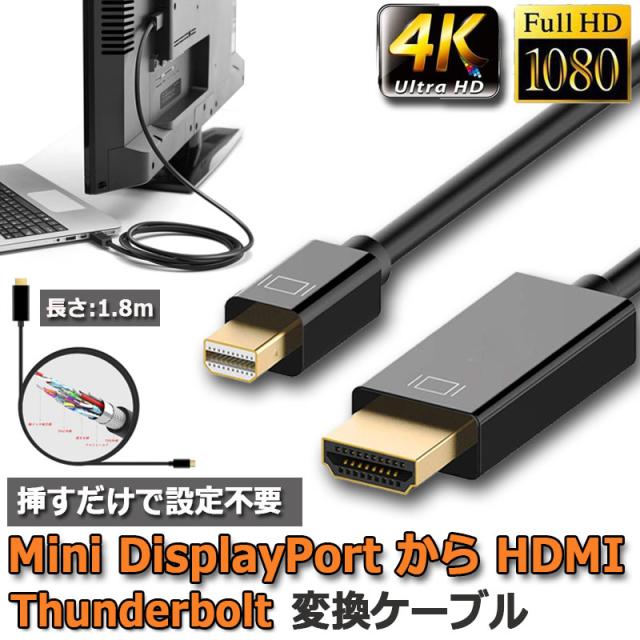 Mini DisplayPort to HDMI 変換ケーブル displayport to hdmi ミニ ディスプレーポート MINI DP 4Kx2k 解像度対応 1.8m MacBook MacBook Pro MacBook