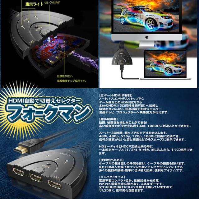 hdmi 切替器 HDMI 切替器 分配器 セレクター 3入力1出力 1080p 3D対応 電源不要 DVD Fire TV Stick Xbox One Switch PS4/3 ゲーム機 液晶テレビ テレビ プロジェクター対応