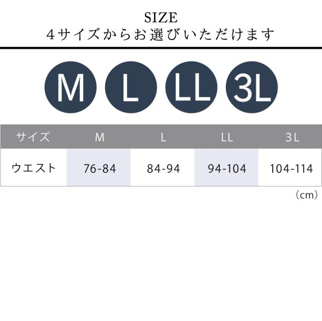 ■サイズ:ウエスト M/76-84、L/84-94、LL/94-104、3L/104-114