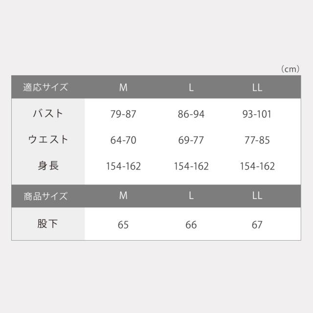 ■サイズ:身長154-162、M/バスト79-87、ウエスト64-70、股下65、L/バスト86-94、ウエスト69-77、股下66、LL/バスト93-101、ウエスト77-85、股下67cm