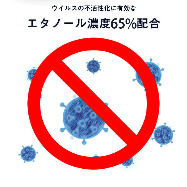 ウイルスや汚れから手指を守るエタノール濃度65%(w/v%)を配合。高すぎず低すぎない最適なエタノール配合量です。