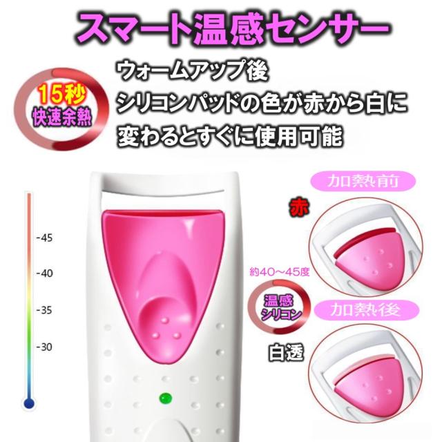 送料無料 ホットビューラー ホットカーラー まつ毛カラー 電池式 ホットアイラッシュ まつげカール まつげアイロン 感温シリコン 火傷防止 携帯便利 15秒快速予熱 シリコンパッド付き 自然なカール