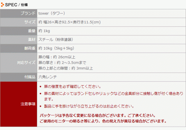 tower(タワー) ランドセル&リュックハンガー2段towerのハンガーなら、お部屋の扉に掛けるだけで収納スペースが誕生!