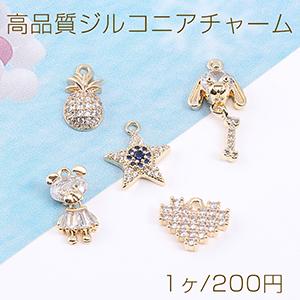 高品質ジルコニアチャーム 星形/パイナップル/ハート型/クマ/犬&骨 ゴールド(1ヶ)