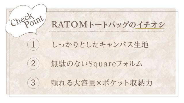[ RATOMキャンバスバッグ仕様 ]