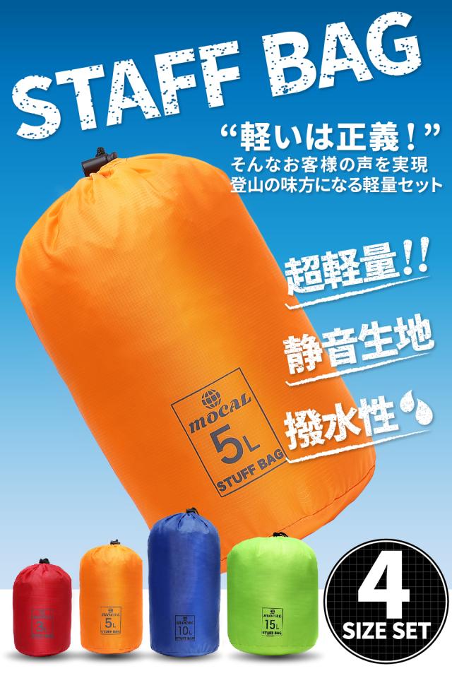 送料無料 スタッフバッグ セット 登山 超軽量 アウトドア キャンプ 撥水 4種セット(3L・5L・10L・15L) 人気 おすすめ