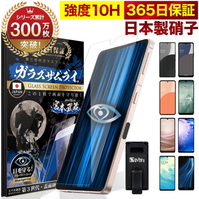 【 365日完全保証 ブルーライトカット 】AQUOS ガラスフィルム フィルム wish5 R9 Pro sense10 wish4 sense9 8 7 6s 6 zero6 wish3 wish2 5G sense4 4lite 4basic R5G ブルーライトカット R210H ガラスザムライ OVER`s オーバーズ