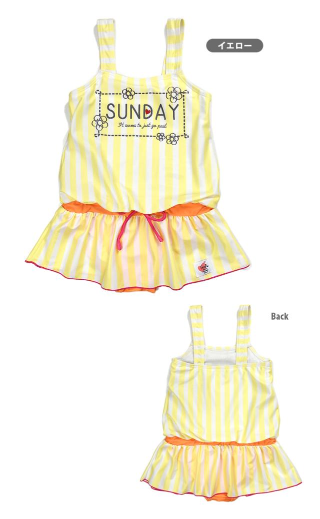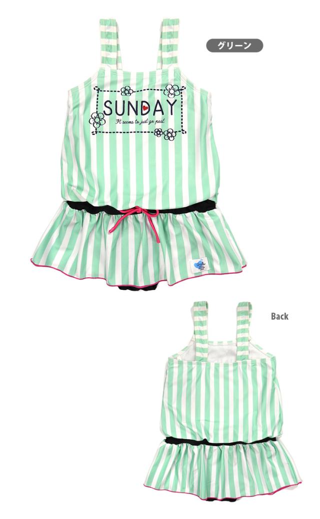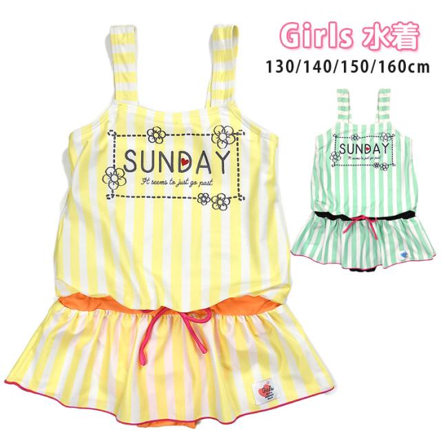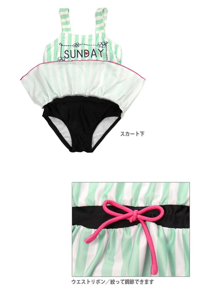 【メール便送料無料】キッズ・ジュニア女の子用ワンピース水着 130 140 150 160 369081 ミニスカート ストライプ リボン No.sw2944