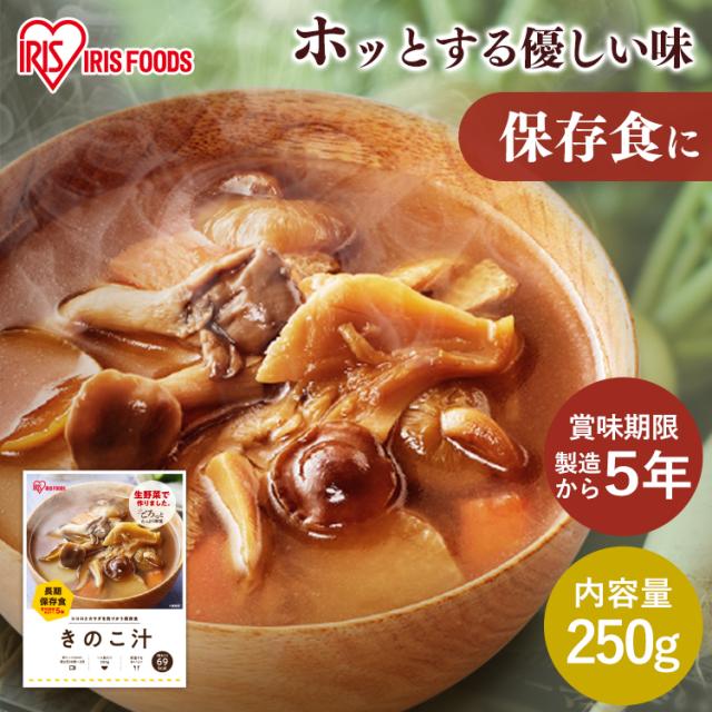 災対食パウチきのこ汁 250g 災対食 パウチ きのこ汁 汁物 汁 防災 備蓄 キノコ きのこじる 茸 なめこ しめじ 舞茸 非常食 保存食 長期保存 食品 防災食 災害食 おいしい アイリスフーズ