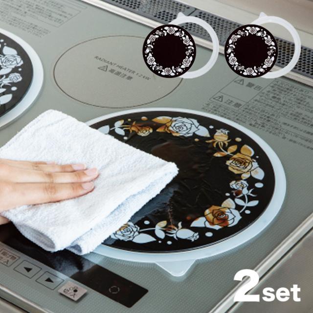 IHコンロ用ガラス製汚れ防止プレート 2枚 シリコンリング付(ih 汚れ 防止 シート 汚れ防止 焦げ防止 キズ防止 保護シート 油汚れ 防止シート ih対応 ihクッキングヒーター ihコンロ キッチン用品 家庭用)【F】