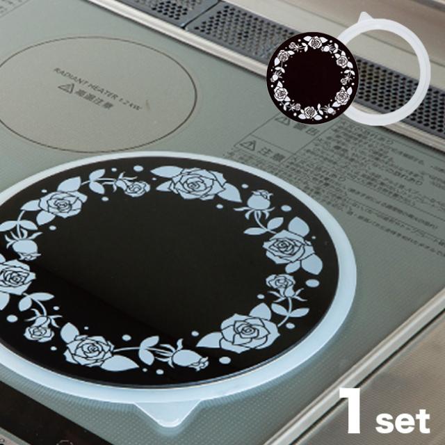 IHコンロ用のガラス製汚れ防止プレートと、ズレ対策に便利なシリコーンゴムのセットです。