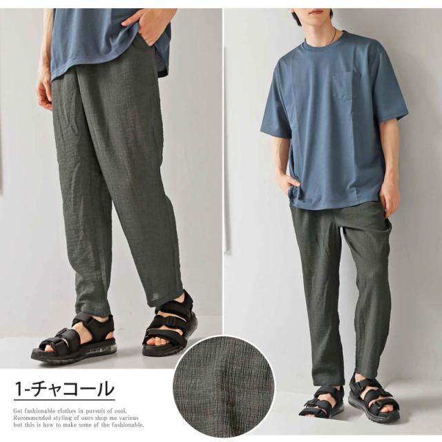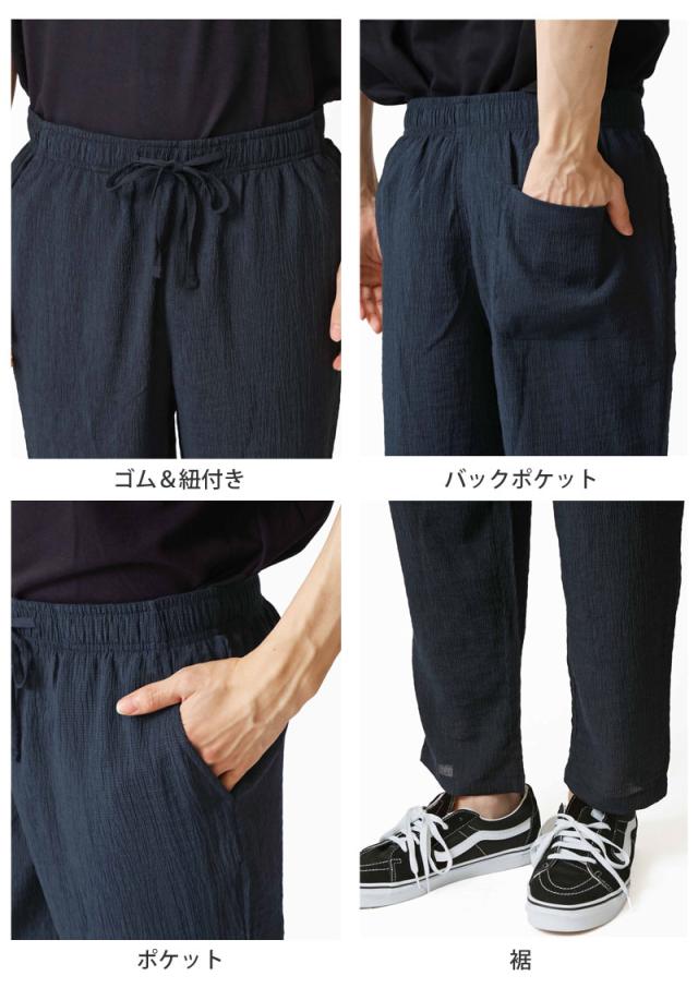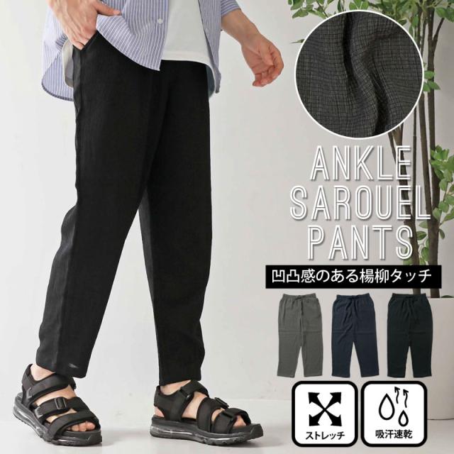 春 夏 新作 サルエルパンツ メンズ ワイド ストレッチ パンツ アンクル 無地 速乾 涼しい リラックス 楊柳 送料無料 ゆうパケ