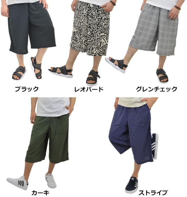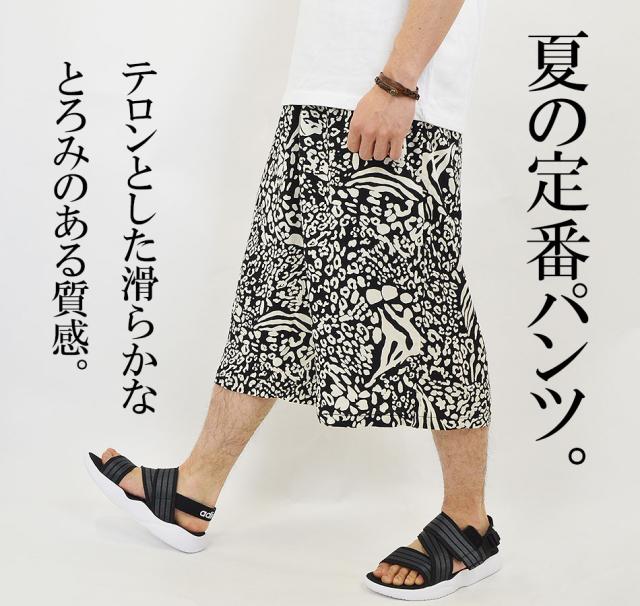 夏新作 ステテコ おしゃれ ゆったり 大きめ 部屋着 パジャマ リラックスパンツ 涼しい レーヨン100% 半端丈 ワイドパンツ 七分丈パンツ メンズ 冷感 七分丈 ワイド 無地 黒 柄物 レオパード柄 グレンチェック メール便送料無料