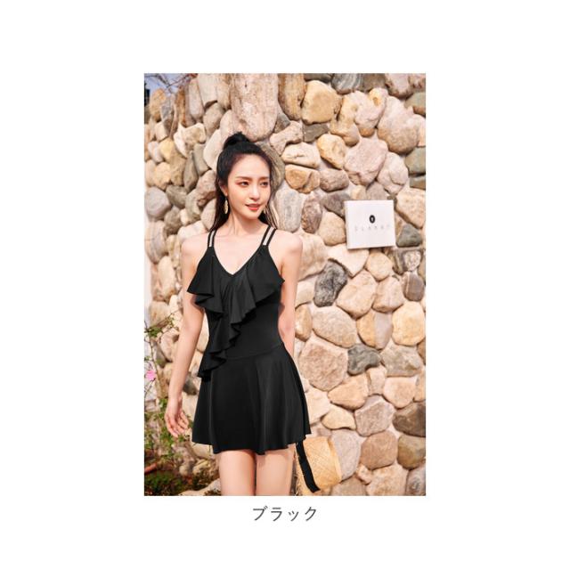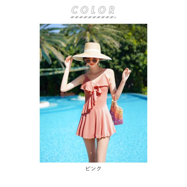 水着 レディース ワンピース 通販 ワンピース水着 体型カバー おしゃれ かわいい 大人 可愛い 無地 シンプル フレア フリル スカート 黒 ブラック ピンク イエロー 海 プール 女性用