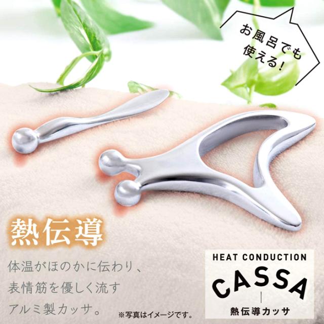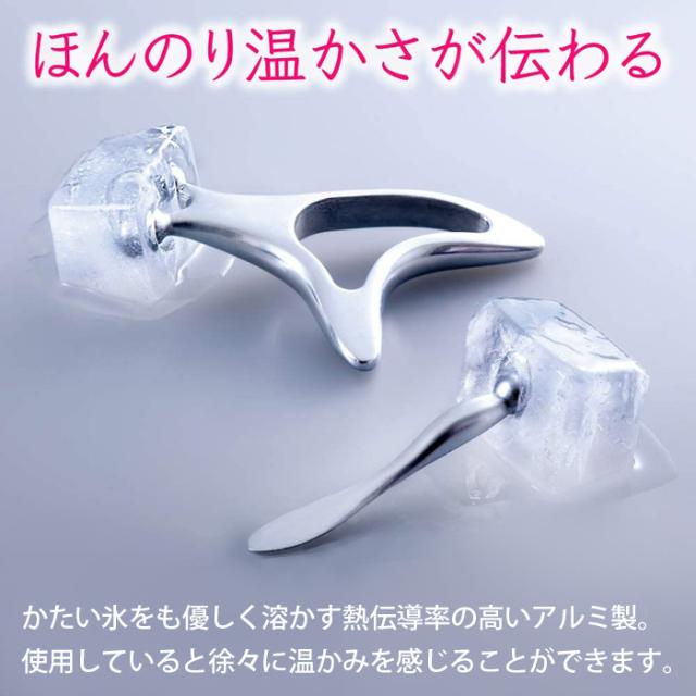 熱伝導で体温がほのかに伝わり、表情筋を優しく流すアルミ製カッサ。