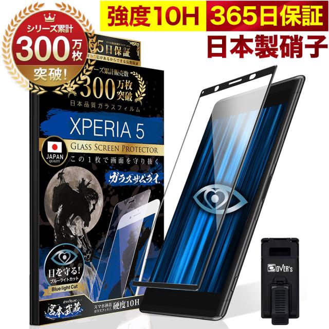 Xperia 5 SO-01M SOV41 ガラスフィルム 全面保護フィルム Xperia5 ブルーライト32%カット 目に優しい ブルーライトカット 10H ガラスザムライ フィルム 液晶保護フィルム OVER`s オーバーズ 黒縁 TP01