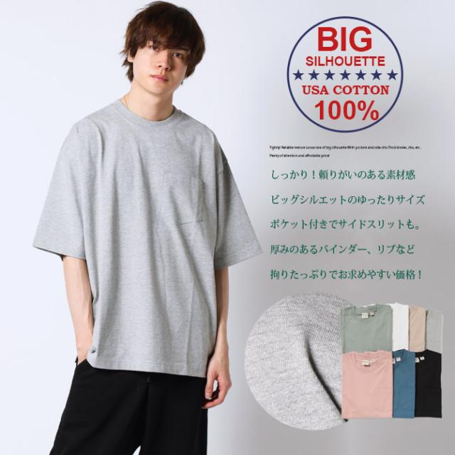 Tシャツ メンズ USAコットンオーバーサイズTシャツ 半袖 クルーネック ポケットTシャツ 春 夏 新作 ビッグシルエット ヘビーウェイト コットンUSA 綿100%