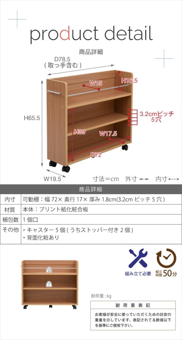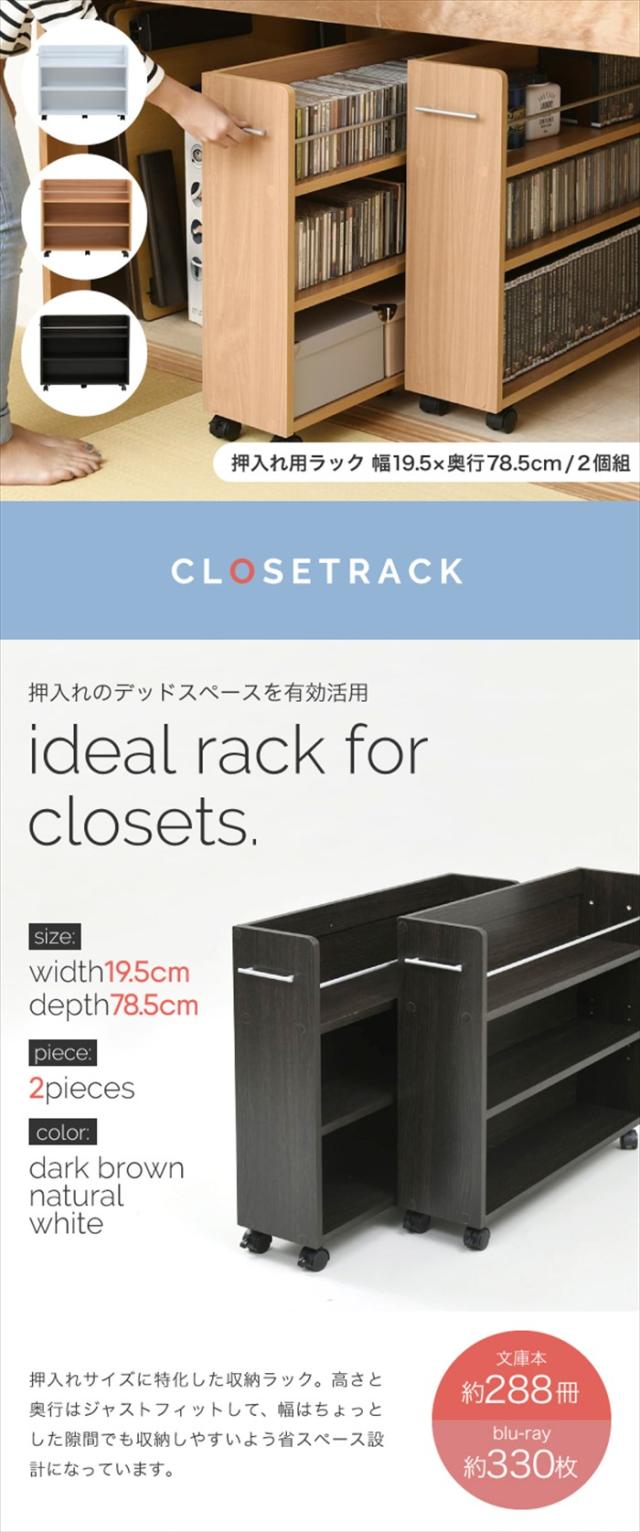 押入れ 収納 ラック 本棚 2個セット 幅19.5 奥行78 .5 キャスター付き 隙間 スリム ワゴン 棚 3段 大容量 CD DVD 本 漫画 整理 収納 スライド 収納庫 おしゃれ