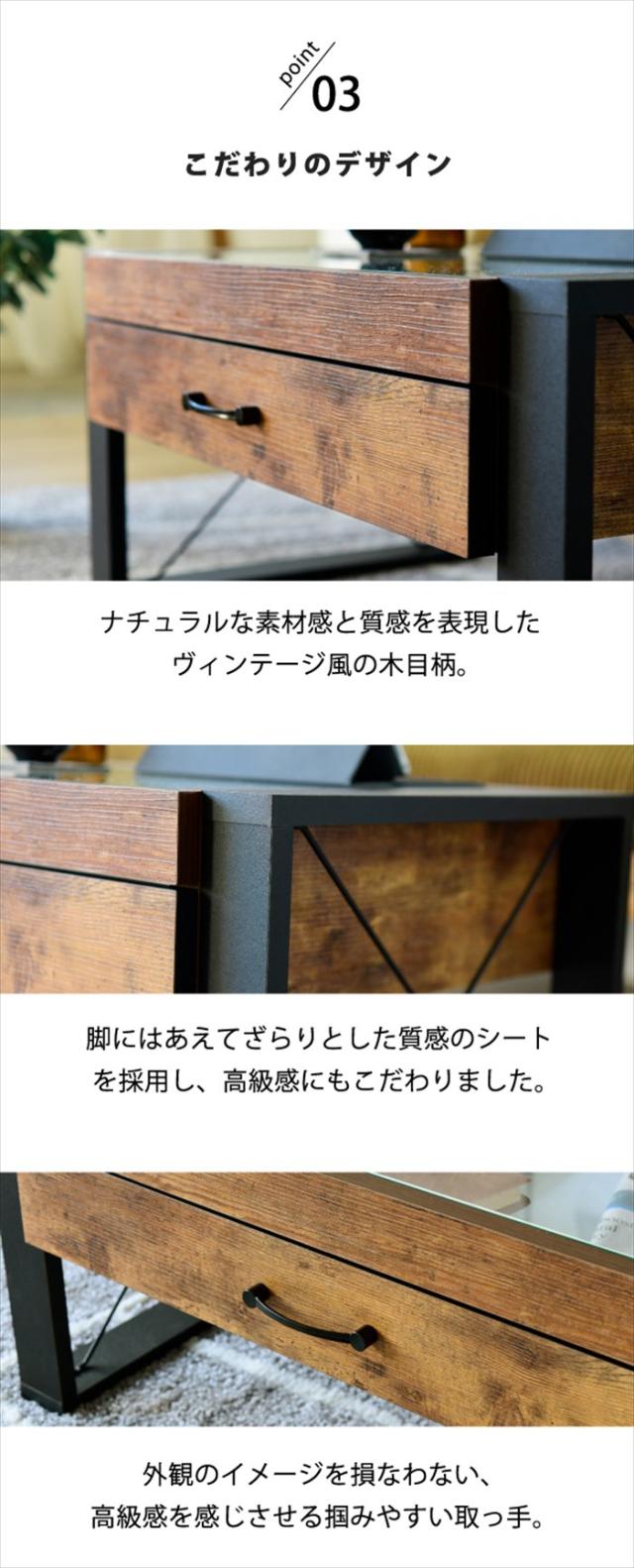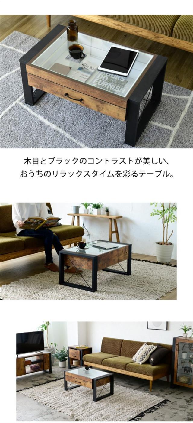 ガラステーブル ビンテージ風 ヴィンテージ ヴィンテージ風 ビンテージ アメリカンヴィンテージ アンティーク インダストリアル 木製 木目 木目調 おしゃれ 収納 お洒落 黒 ブラック ダークブラウン ブラウン 茶色 茶 脚 アイアン ブラックアイアン スチール 鉄 木 ソファ 二人暮らし ひとり暮らし ノートパソコン 四角 ガラス天板 ガラストップ 雑貨 重厚感 勉強 パソコン 引き出し付 ひきだし リビング 見せる収納 木材 pc コレクション 強化ガラス天板 ラック リモコン ディスプレイ 雑誌