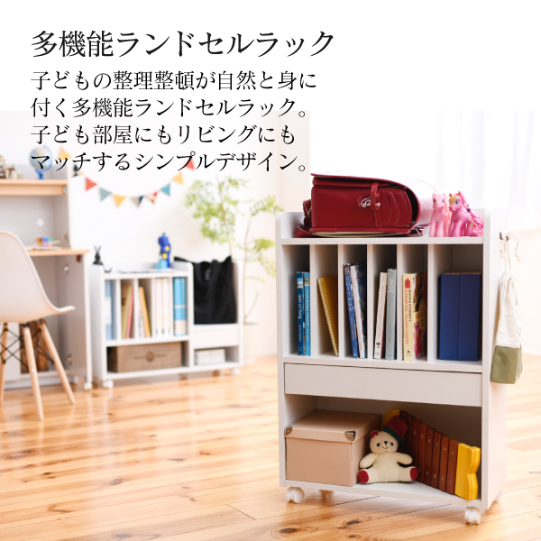 ランドセルラック 多機能 幅60 高さ85 奥行30 ランドセル 収納 子供部屋 キャスター付き 木製 本棚 子供 スリム ラック 絵本ラック キッズ ジュニア家具
