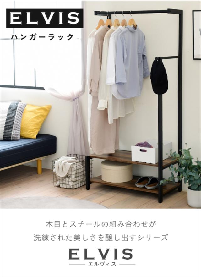 ハンガーラック インダストリアル 高さ 160cm ヴィンテージ風 見せる収納 吊り下げ 収納棚 2段 ロングコート スーツ 帽子 収納 ブラック 一人暮らし elvis