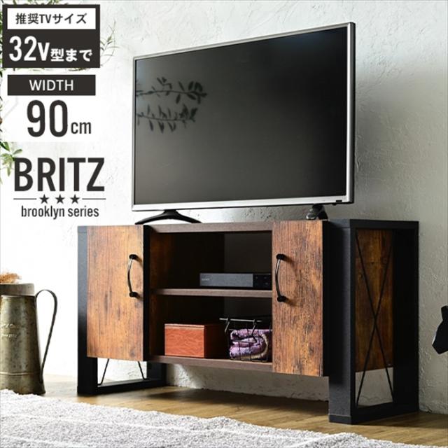 テレビ台 32型 対応 ヴィンテージ 風 幅 90cm ブルックリン インダストリアル アイアン レコーダー収納 木製 脚付き 扉付き 棚付き ひとり暮らし コンパクト