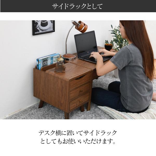 収納するものから設計されたデザインだから、コンパクトでも機能的。薄型の引き出し2段と、奥には雑誌を立てて収納できるオープンスペース付き。さらに天板を開くと仕切り付きの収納部もあるので整理整頓も簡単。丸みのある北欧風のデザインはとてもおしゃれで、コンパクトなのでひとり暮らしのお部屋にもぴったりです。