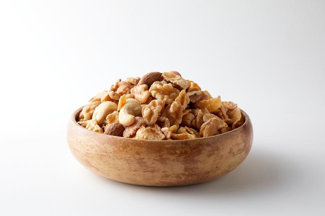 1:アーモンド:完全無添加の素焼きアーモンド。油や塩を使わずに焙煎したのでアーモンド本来の自然の甘みやコクを味わうことができます。カリッと香ばしい食感をお楽しみください。2:くるみ:くるみはナッツ類の王様と言われるほどの高い栄養価を誇ります。香ばしい風味とくるみ独特の柔らかい食感が特徴です。3:カシューナッツ:ナッツの甘さを存分に活かした焙煎をしました。カシューナッツは香ばしく柔らかいおつまみとして人気のナッツの1つです。■人気の定番ナッツにシリアルを合わせました!1:チョコ:ナッツ3種類にチョコシリアルを合わせました。程よいチョコの甘さで小腹も満足!2:プレーン:ナッツ3種類にプレーンシリアルを合わせました。サクサクそのまま食べても、牛乳をかけても!