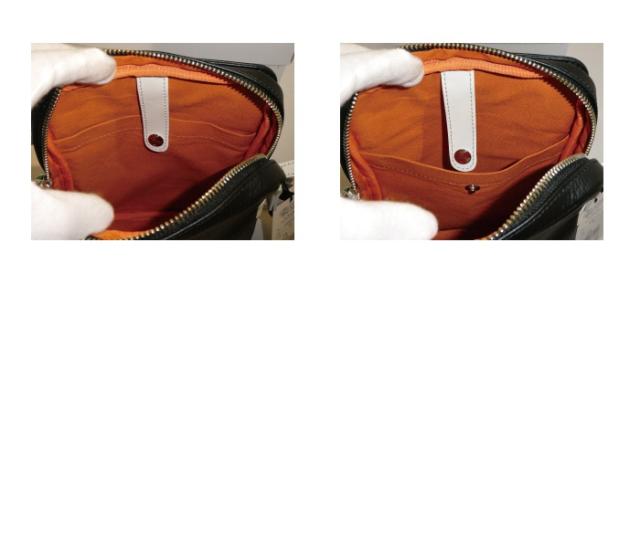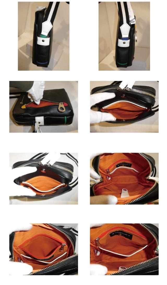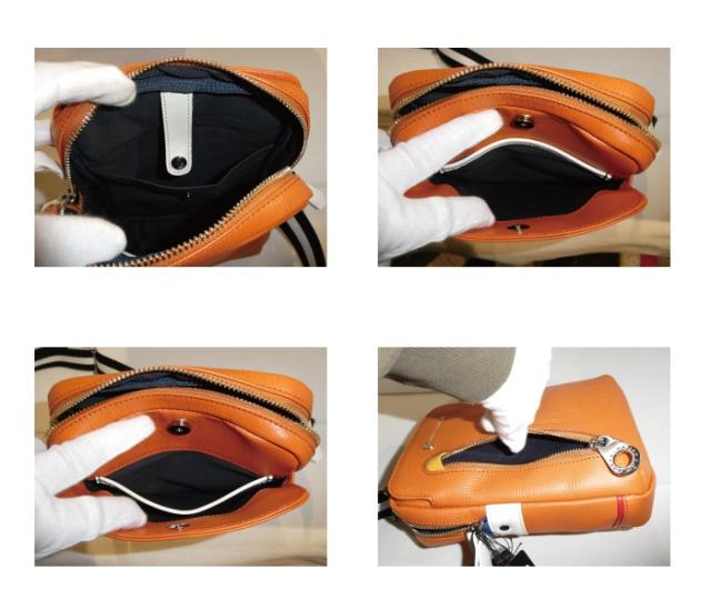 【前面】ファスナーポケット×1、ホック開閉式ポケット(内部にオープンポケット×1)、【本体内部】ホック開閉式ポケット×1、オープンポケット×1、ファスナーポケット×1