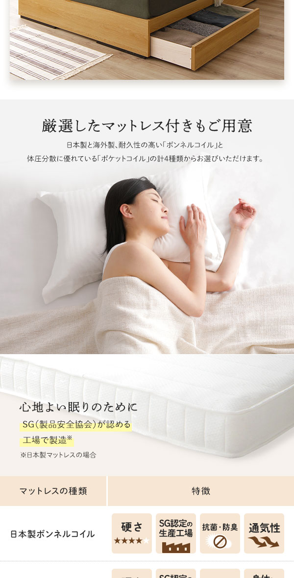 体圧分散に優れている「ポケットコイル」の計4種類からお選びいただけます。