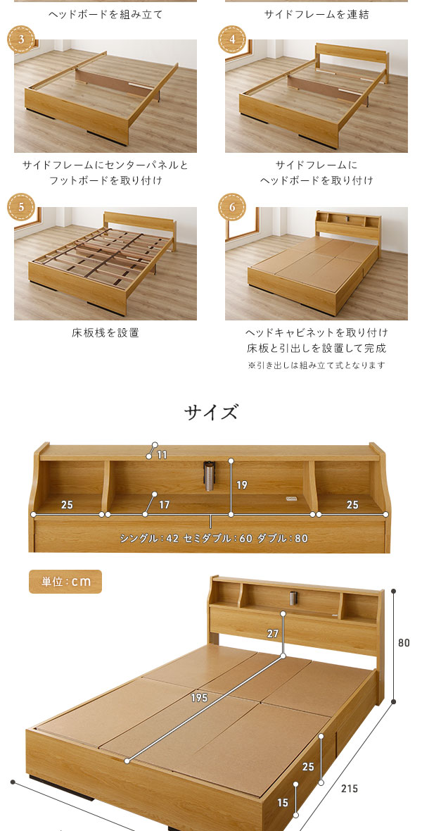 ベッドフレームには必ず厚さ15cm以上のスプリングマットレスを乗せてご使用ください。
