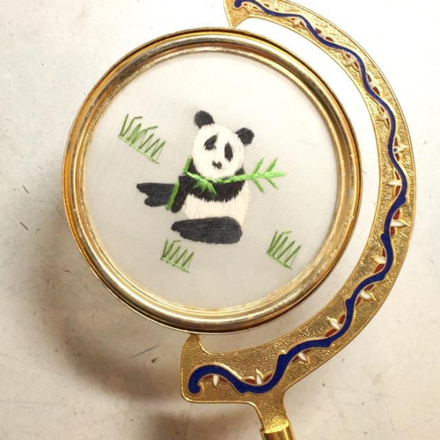 パンダ シルク糸 刺繍 七宝飾りオブジェ