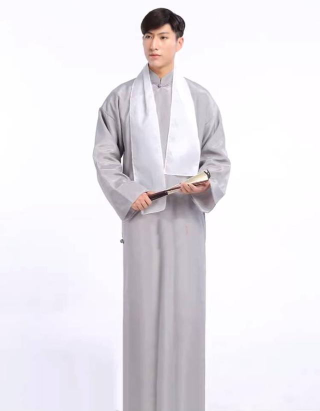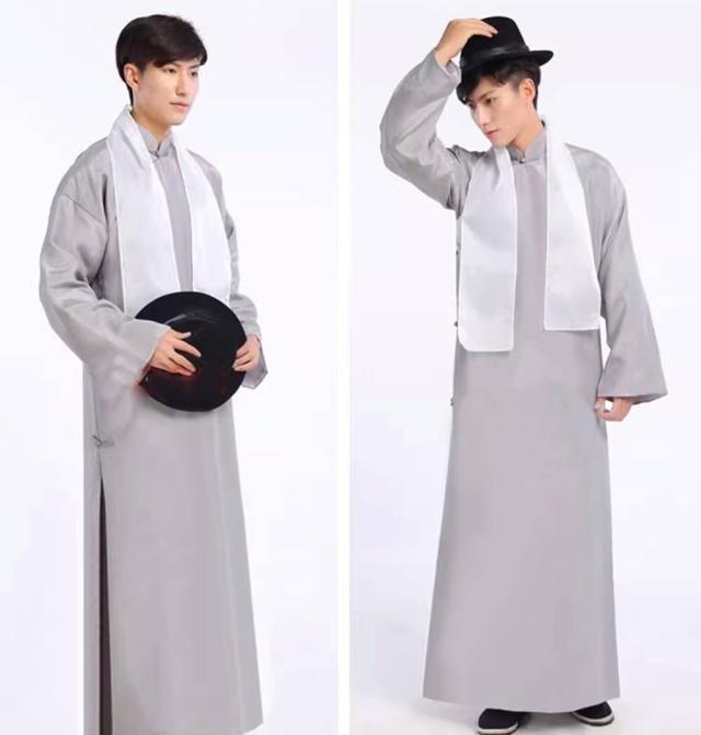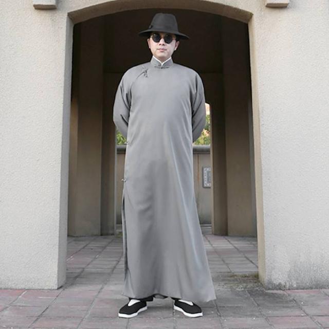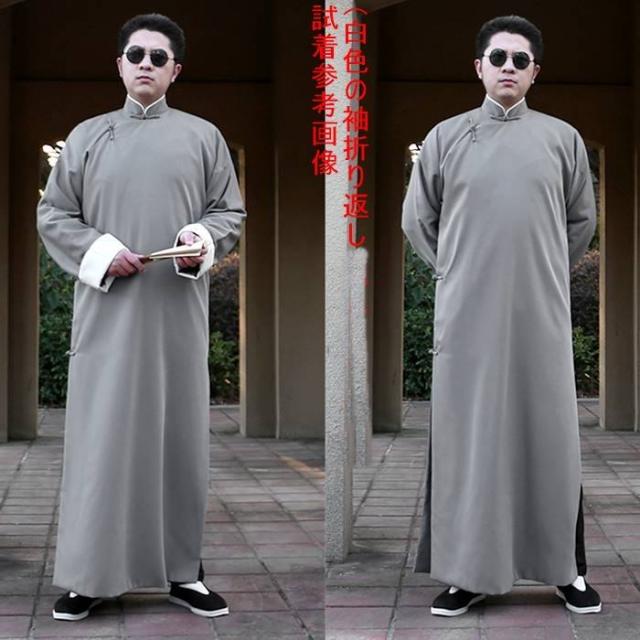 大人男性用コットン生地チャンパオ(長袍・灰色) 薄手素材