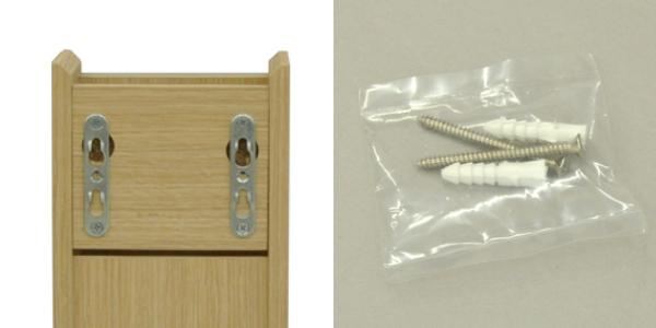 壁掛け用フックと専用ネジ付き