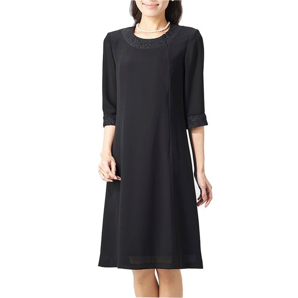 喪服 レディース 礼服 ブラックフォーマル 【衿レース切り替えワンピース】ブラックフォーマル<日本製>6017