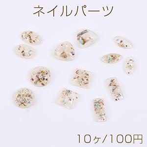 ネイルパーツ 樹脂貼付けパーツ 全6種 シェルパウダー入り ホワイト(10ヶ)