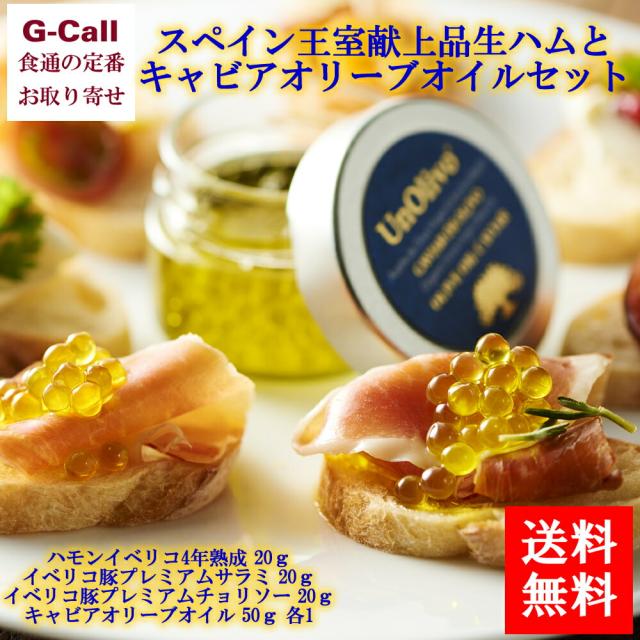 イベリコ屋 スペイン王室献上品生ハムとキャビアオリーブオイルセット イベリコ4年熟成 サラミ チョリソー 各20g キャビアオリーブオイル50g 各1