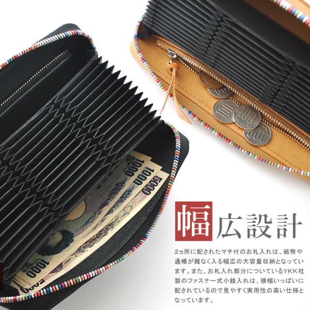 | 仕様 | ラウンドファスナー式 札入れ×2 / カードポケット×36 / ファスナー式小銭入れ×1 / Dカン金具 |
