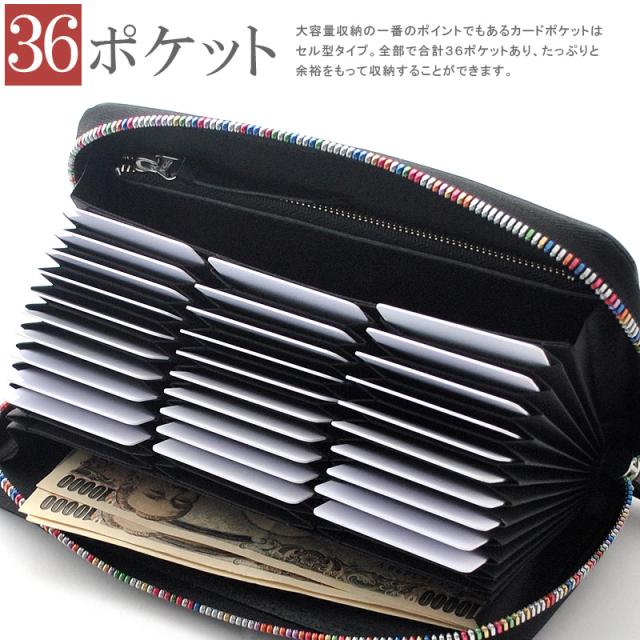 ■仕様:ラウンドファスナー式/札入れ×2/カードポケット×36/ファスナー式小銭入れ×1/Dカン金具
