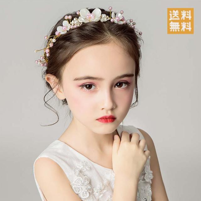 送料無料 ヘアアクセサリー ヘッドドレス 子供 花冠 ヘッドアクセサリー カチューシャ フラワーカチューシャ フラワーモチーフ 髪飾り 子供髪飾り ビジュー パール リボン 立体フラワー 結婚式 発表会 ピアノ発表会 七五三 プレゼント メール便発送