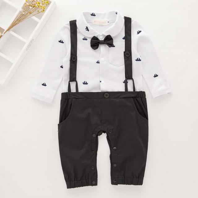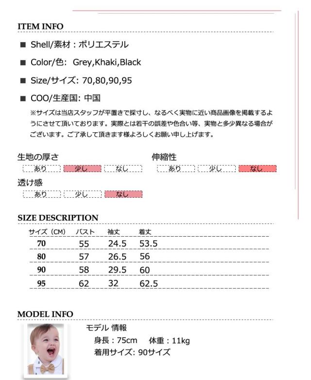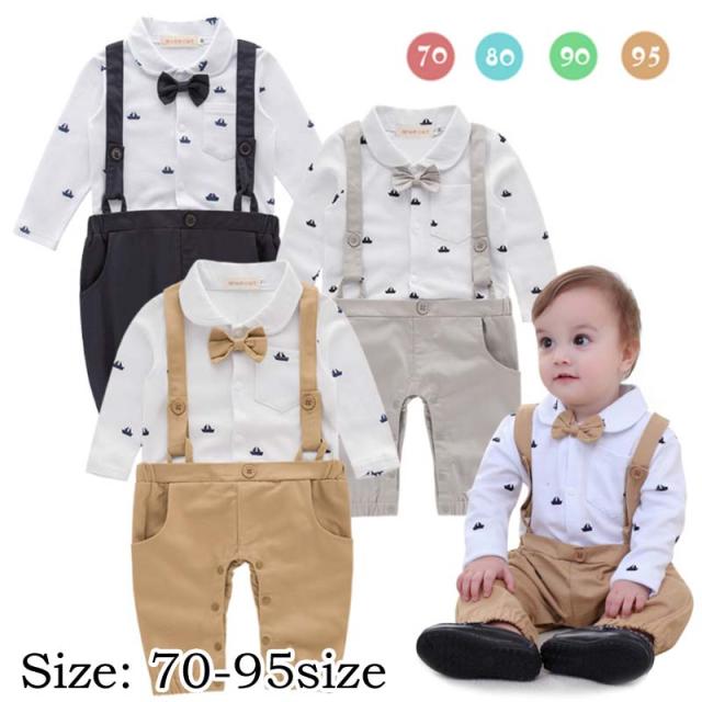 メール便送料無料 ベビー キッズ 子供服 フォーマル 男の子 カバーオール ロンパース タキシード風 蝶ネクタイ付 長袖 スーツ 天竺 誕生日 お食い初め 結婚式 お宮参り 七五三 記念日 初節句 入園式 入学式 春夏秋冬 年間 70/80/90/95