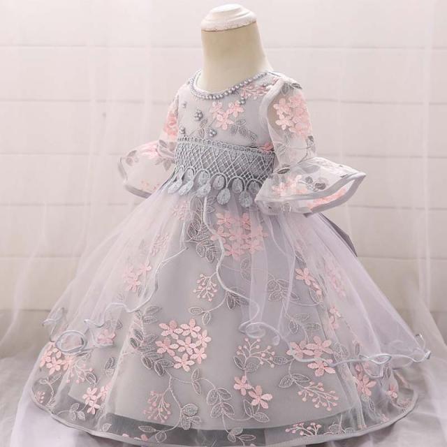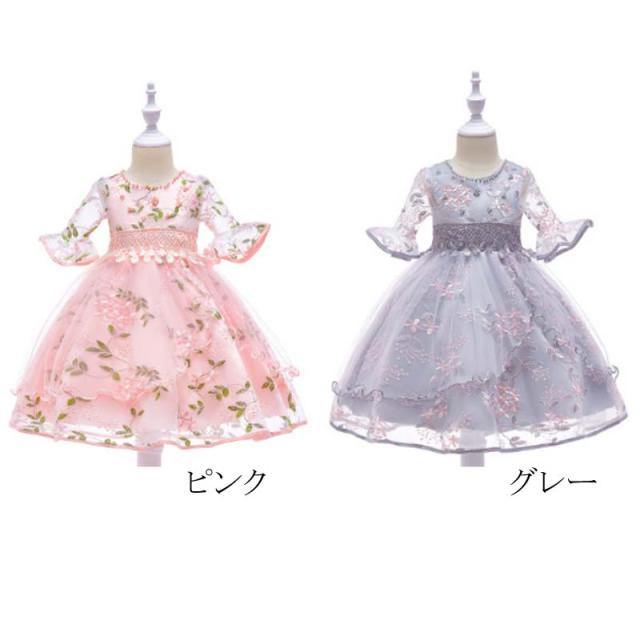 メール便送料無料 子供服 ベビードレス 結婚式 女の子 赤ちゃん ベビー服 お宮参り ベビードレス フラワー ベビードレス 女の子 セレモニードレス レース ワンピース 子供 グレー ピンク 結婚式 プリンセス 豪華 プレゼント 出産祝い