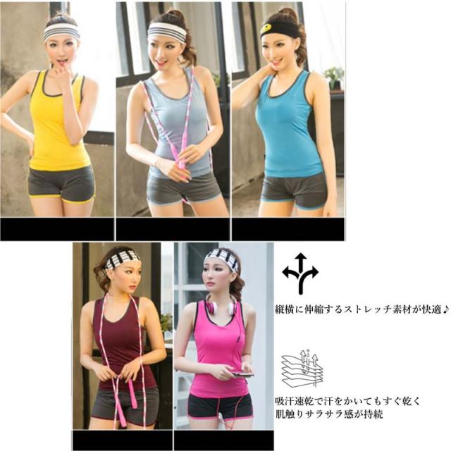 スポーツウェア レディース 2点セット ブラタンクトップ パンツ 短パン フィットネス ヨガウェア ジムウェア セットアップ ルームウエア スポーツ ランニング トレーニング ジム ダンス練習 マラソン 吸汗速乾 ストレッチ ダイエット メール便送料無料