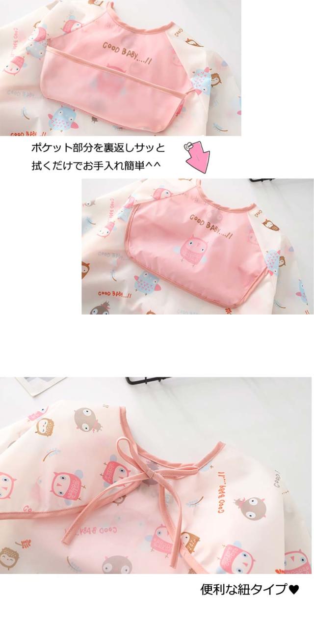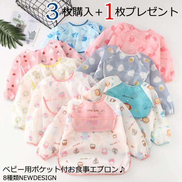 【3枚購入+1枚プレゼント 】送料無料 ベビー用エプロン ポケット付き 長袖 食べこぼしガード 長袖タイプ 防水食事用エプロン お食事エプロン 長袖 6〜48ヶ月 エプロン スタイ 防水 洗濯可 よだれかけ 赤ちゃん