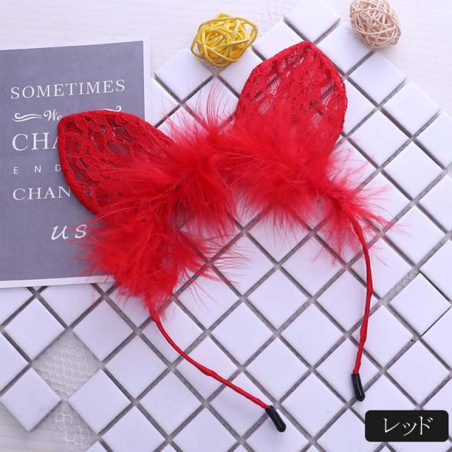 メール便発送 カチューシャ 猫耳 ねこ耳 カチューシャ レッド ブラック 黒 赤 キャット キュート 可愛い 髪飾り アクセサリー コスプレ 衣装 ハロウィン コスチューム 小物 ミミ セクシー レディース パーティー